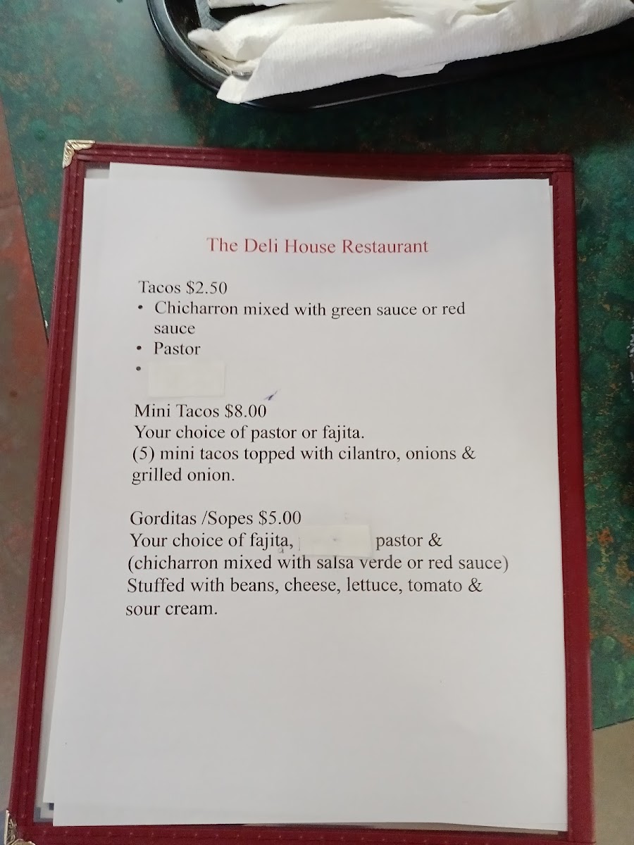 The Deli House Restaurant Menu
